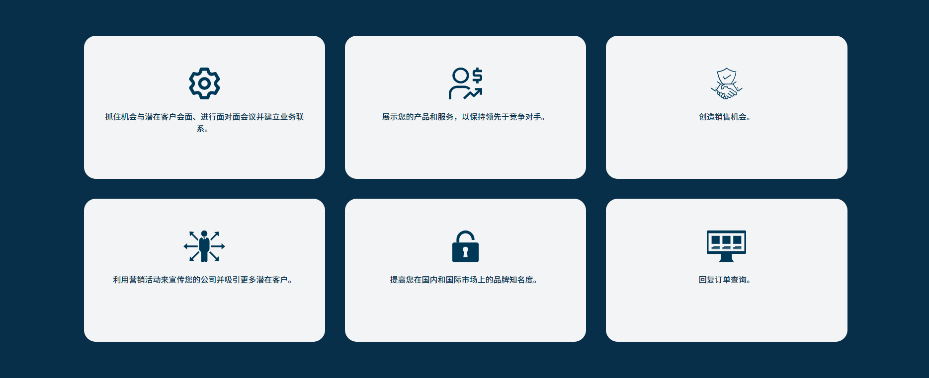 视展全球,伴您左右!我们提供一站式服务,让您参展全程安心、舒心、开心!