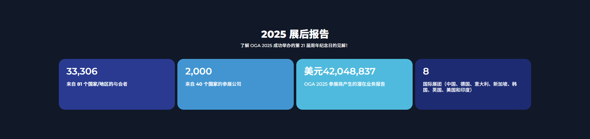 展览面积20,000平方米,吸引来自60个国家的2,000家展商及29,000名专业观众,国际展商占比45%,中国展团近200家;